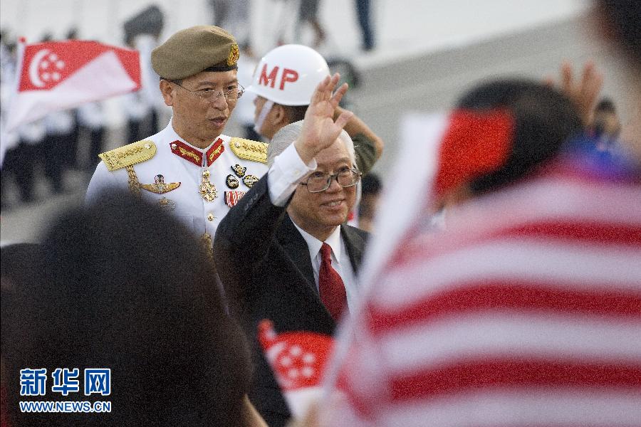 當(dāng)?shù)貢r(shí)間2012年8月9日,新加坡迎來(lái)國(guó)慶47周年。圖為新加坡總統(tǒng)陳慶炎(前中)出席在新加坡濱海灣浮動(dòng)舞臺(tái)舉行的國(guó)慶慶典。圖片來(lái)源:新華網(wǎng)