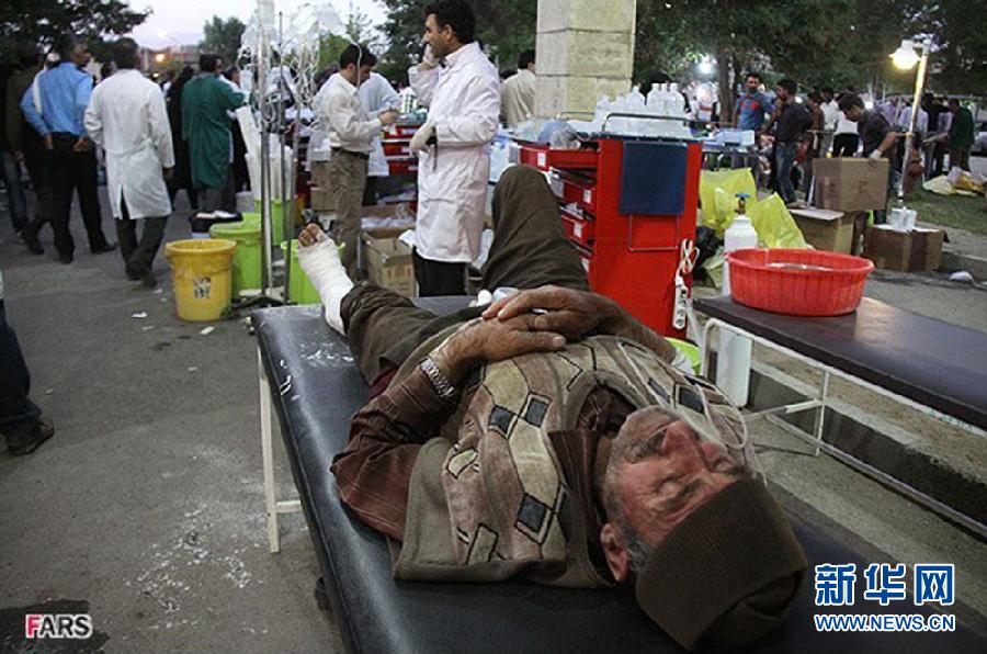 8月11日,在伊朗東阿塞拜疆省首府大不里士附近的阿哈爾市的一所醫(yī)院,醫(yī)生正在救治地震傷者。新華/路透