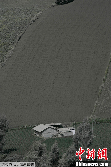 當(dāng)?shù)貢r(shí)間2012年8月19日,厄瓜多爾首都基多以南178公里的通古拉瓦火山發(fā)生噴發(fā),距離火山較近的居民已經(jīng)被緊急疏散。圖為被火山灰覆蓋的房屋。