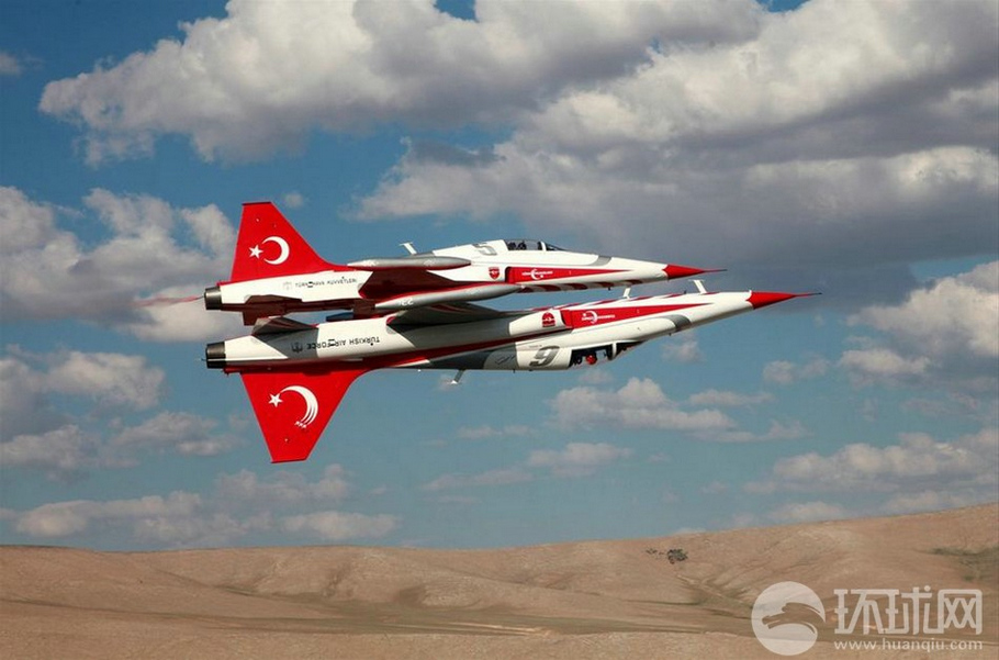 土耳其空軍“土耳其之星”飛行表演隊精彩表演。圖為土耳其空軍的“土耳其之星”特技飛行表演隊在空中做出“雙機靜像”特技動作。(來源:環(huán)球網(wǎng))