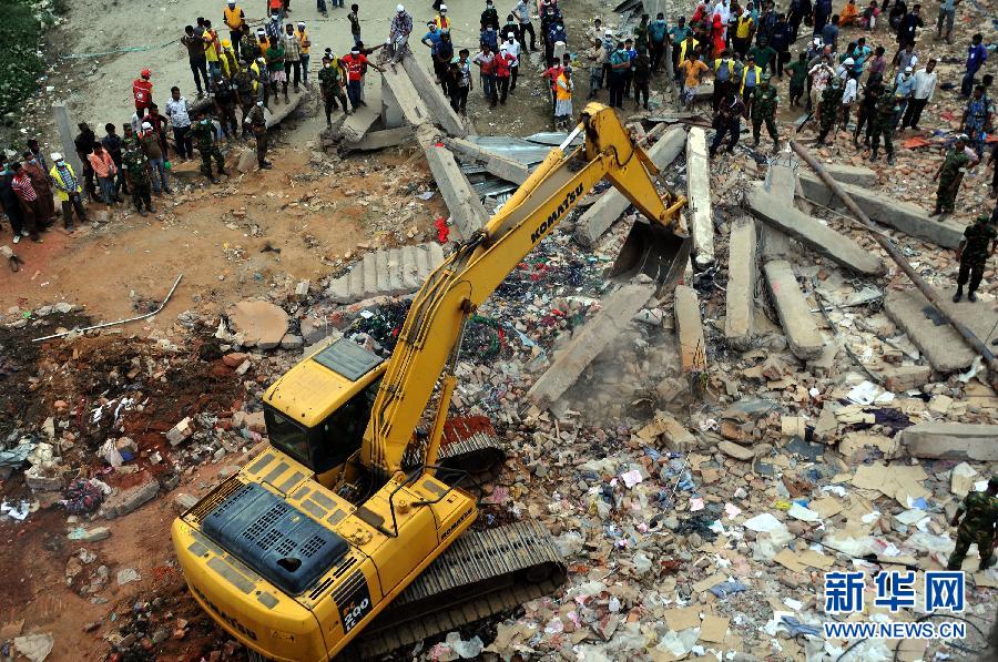 4月26日,在孟加拉國首都達卡郊區(qū)薩瓦爾鎮(zhèn),救援人員在樓房倒塌現(xiàn)場忙碌。孟加拉國政府當日確認,薩瓦爾鎮(zhèn)24日發(fā)生的樓房倒塌遇難者已經(jīng)增至304人。這是孟加拉國有史以來發(fā)生的最嚴重樓房倒塌事故。新華社發(fā)(沙里夫·伊斯蘭攝)
