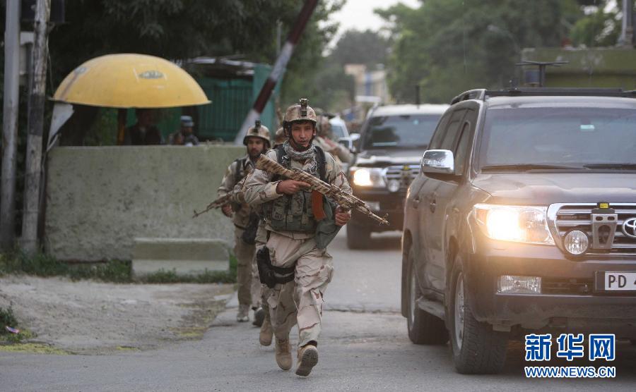 5月24日,在阿富汗首都喀布爾,安全人員前往現(xiàn)場(chǎng)。 當(dāng)日,喀布爾發(fā)生連環(huán)爆炸,同時(shí)有武裝分子與警方發(fā)生槍戰(zhàn),傷亡情況不詳。新華社發(fā)(艾哈邁德·馬蘇德攝)