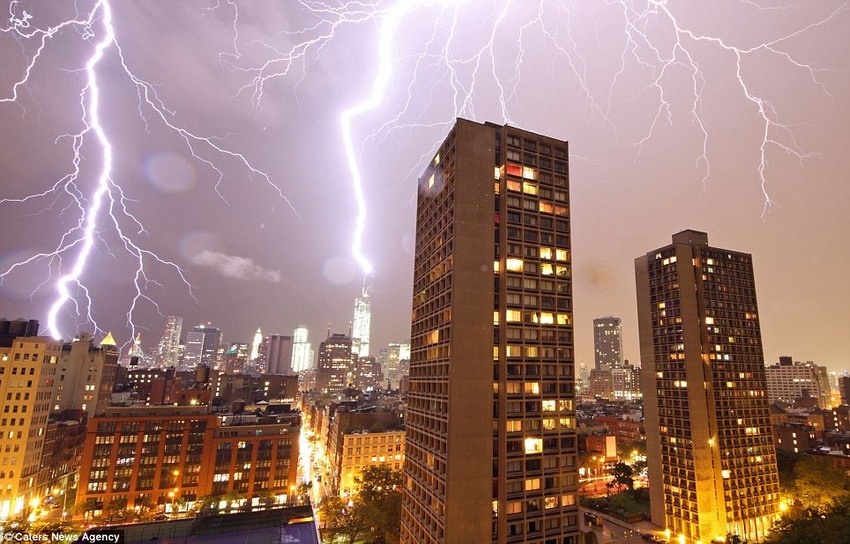 在美國部分地區(qū),雷暴伴隨今年的酷暑期而來,當?shù)貢r間2日夜間,閃電照亮世貿(mào)中心上空,如此激動人心的奇妙景象并不多見。這場雷暴為當?shù)鼐用窠馐罱禍,也給攝影師創(chuàng)造了絕佳的拍攝機會。