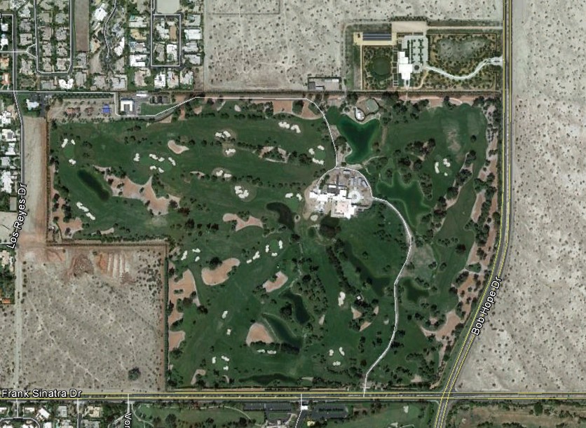 安納伯格莊園位于加利福尼亞州蘭喬米拉日地區(qū),占地200英畝,地處沙漠邊緣,周邊有許多沙地。莊園內(nèi)有高爾夫球場、人造湖泊、泳池等。在莊園北側(cè)是游客中心,內(nèi)有美麗的花園,占地15英畝。圖片來源:谷歌衛(wèi)星地圖