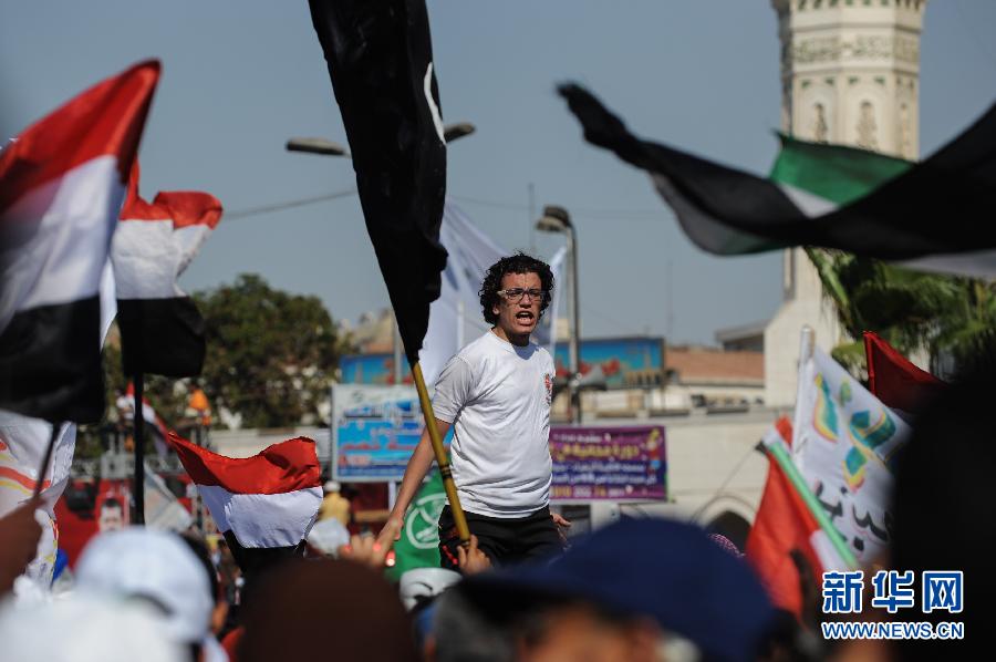 6月21日,埃及總統(tǒng)穆爾西的支持者們?cè)陂_羅納賽爾城參加集會(huì)游行。數(shù)十萬(wàn)名埃及民眾21日走上街頭,聲援埃及總統(tǒng)穆爾西,呼吁所有埃及人通過(guò)和平而非暴力的方式表達(dá)自己的訴求。 新華社記者覃海石攝