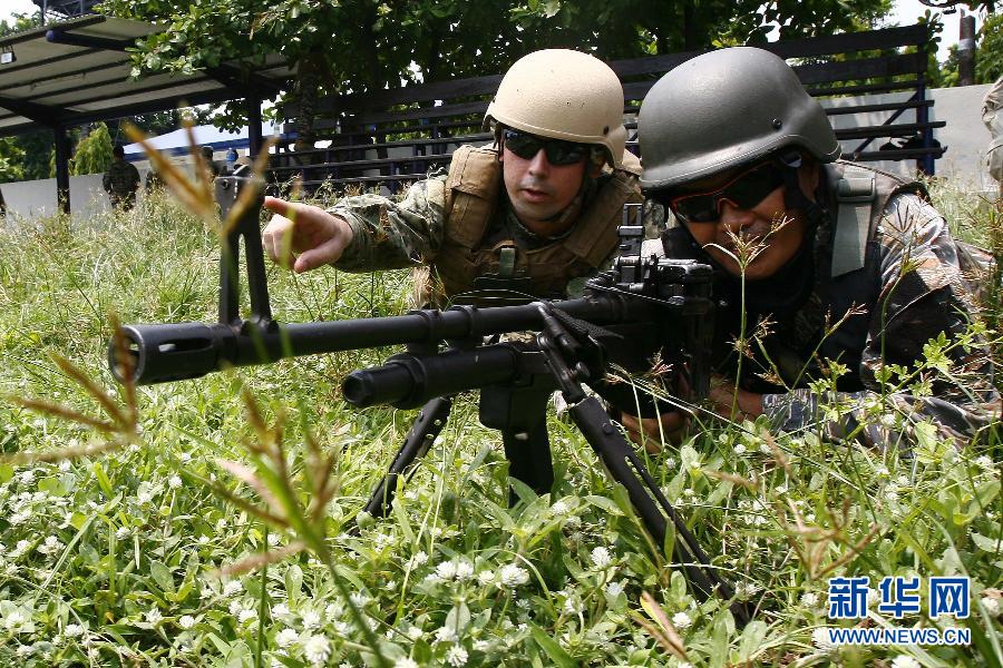 菲律賓與美國(guó)海軍27日開始在南海舉行代號(hào)為“卡拉特”的聯(lián)合軍事演習(xí)。此次軍演將持續(xù)到7月2日,演習(xí)地點(diǎn)位于菲北部的呂宋島三描禮士沿海地區(qū),內(nèi)容包括聯(lián)合兩棲登陸演習(xí)、海上安全行動(dòng)、“海洋權(quán)益”意識(shí)、情報(bào)共享、叢林戰(zhàn)以及“人道主義”救援和救災(zāi)等活動(dòng)。新華社發(fā)(烏馬利攝)