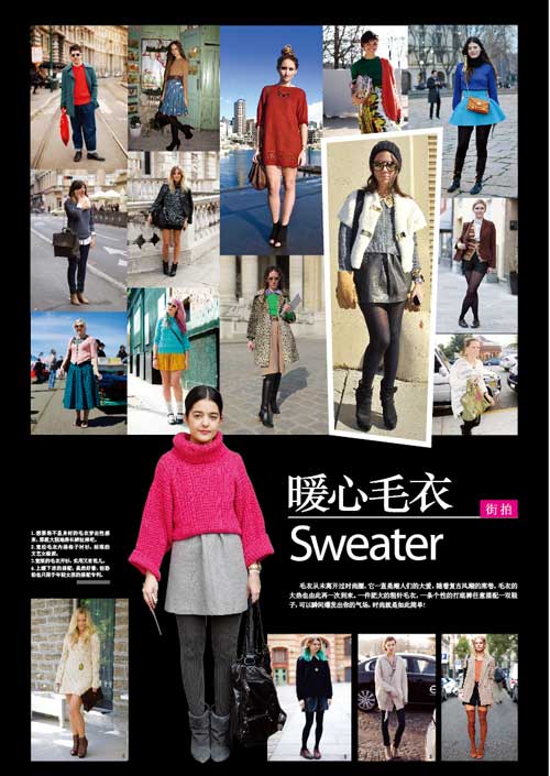 毛衣從未離開過時(shí)尚圈,它一直是潮人們的大愛,隨著復(fù)古風(fēng)潮的席卷,毛衣的大熱也由此再一次到來。一件肥大的粗針毛衣,一條個(gè)性的打底褲任意搭配一雙鞋子,可以瞬間爆發(fā)出你的氣場,時(shí)尚就是如此簡單!