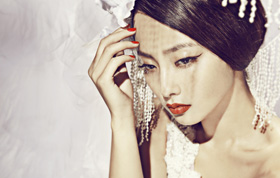長裙設(shè)計由1000朵紅玫瑰花瓣從身上一直垂到地面,用金箔裝飾的15朵卡門玫瑰和200朵菊花點綴臀部和裙擺,150朵紫色玫瑰、75朵非洲菊和300朵康乃馨花瓣構(gòu)成裙邊,再加上一雙由玫瑰花瓣覆蓋的細高跟鞋完成整個外觀。