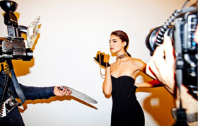 日前赴港為新片定妝的當(dāng)紅性感美女主播柳巖,接受某周刊專訪并拍攝寫真,她以一襲Dolce&Gabbana紫紅亮片高開衩蕾絲胸衣、黑絲配紫鞋的造型出鏡拍攝一輯性感主題寫真,蓬松長發(fā)迷離眼色,柳巖手執(zhí)大紅玫瑰演繹香艷曖昧場面。