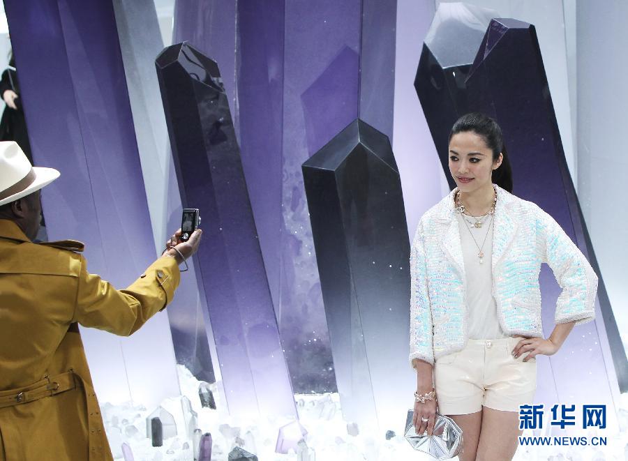 3月6日,中國演員姚晨出席法國巴黎時(shí)裝周香奈兒2012/2013秋冬新品發(fā)布會(huì)。當(dāng)日,香奈兒總設(shè)計(jì)師卡爾·拉基菲爾德將法國巴黎大皇宮裝扮成“水晶巖洞”,上百根大小不同、顏色各異的水晶柱形狀飾品以各種形態(tài)豎立在伸展臺(tái)上,模特身著以“水晶概念”為主題的香奈兒最新春裝,穿梭在“水晶”世界中。新華社記者高靜攝