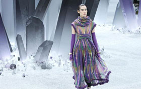 2012秋冬時(shí)裝周上的躍動(dòng)元素——拼接無論是對(duì)比色相撞還是同色系相協(xié),無論是色塊碰撞還是材質(zhì)拼接,在2012秋冬時(shí)裝周的T臺(tái)上,大師們對(duì)于色彩、圖紋和面料的把握總是恰到好處,用各種不同形式組合出多元化的視覺意象,淋漓盡致地玩味這一季秋冬。這是3月1日,模特在法國(guó)巴黎時(shí)裝周上展示設(shè)計(jì)師Manish Arora的2012/2013秋冬新品。 新華社/路透