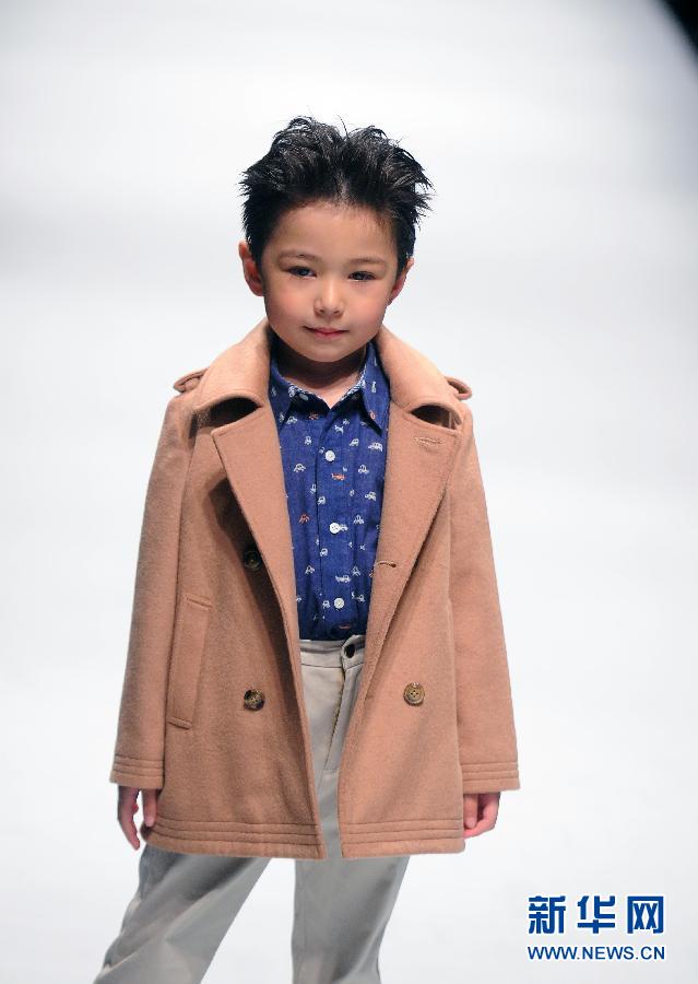當(dāng)日,香港童裝品牌KELKEL在上海時(shí)裝周2012秋冬作品系列發(fā)布會(huì)上展示了以“撥動(dòng)孩子夢(mèng)中的琴弦”為主題的童裝! ⌒氯A社發(fā)(董鴻景 攝)