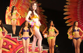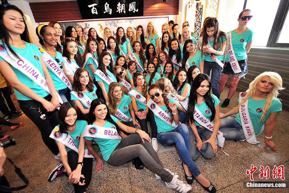 5月2日上午,參加“2012中華旅游小姐環(huán)球大賽暨武則天故里旅游形象大使全球選拔賽”的60名各國佳麗,在高43米、共13層的鳳凰樓上向全世界發(fā)出邀請。當日,在鳳凰樓的陳列館內,與鳳凰有關的各種圖片、實物乃至傳說故事都吸引著這群對中國文化向往已久的姑娘們。她們興致勃勃的登上“川北第一樓”鳳凰樓,鳥瞰山下,將廣元城市景色盡收眼底。中新網(wǎng)記者 金碩 攝