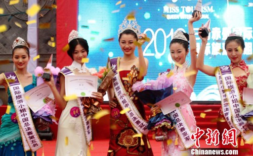 圖為2012國際旅游小姐中國區(qū)總決賽獲獎前5名佳麗。中新社發(fā)錢興強 攝