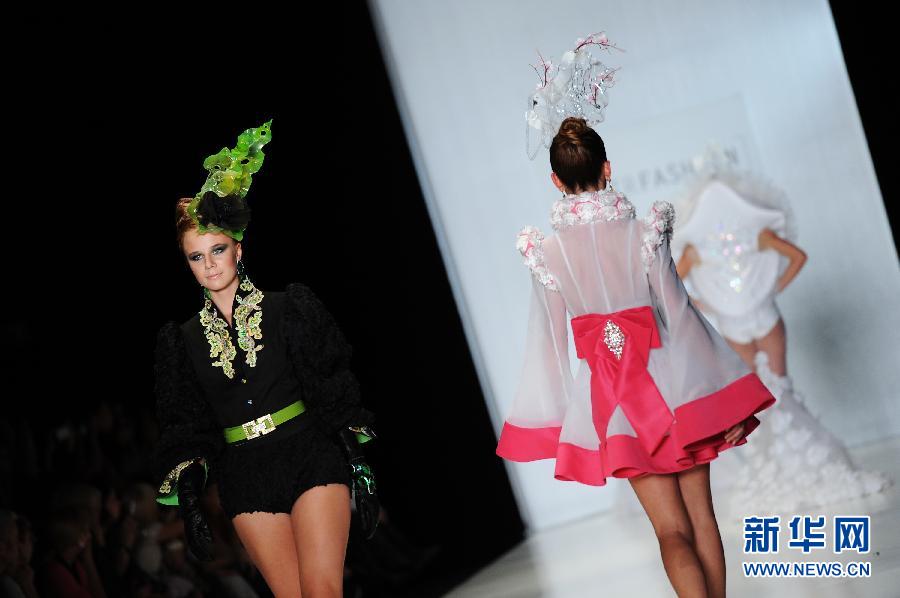 10月22日,模特在俄羅斯莫斯科展示新秀服裝設(shè)計(jì)師作品。 當(dāng)日,2013俄羅斯春夏時(shí)裝周對(duì)6位俄新秀時(shí)裝設(shè)計(jì)師的作品進(jìn)行了集中展示。新華社記者姜克紅攝