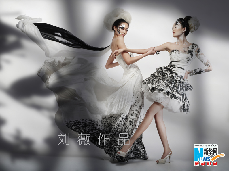 劉薇百幅作品回顧賞析中,清風(fēng)舞明月, 幽夢落花間。設(shè)計師的靈感是流淌到筆端的濃濃墨色,從容地滴于輕舞飛揚的裙裾,喜怒哀樂的思緒慢慢潤染開來……