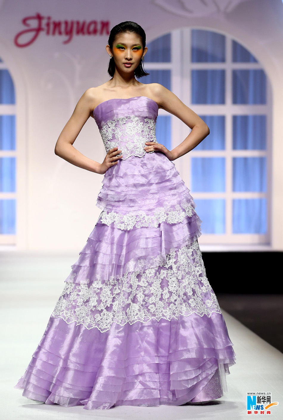 10月28日,模特在北京舉行的中國國際時裝周“金苑·洪美璇時裝發(fā)布會”上展示設(shè)計師洪美璇的時裝作品。新華社記者陳建力攝