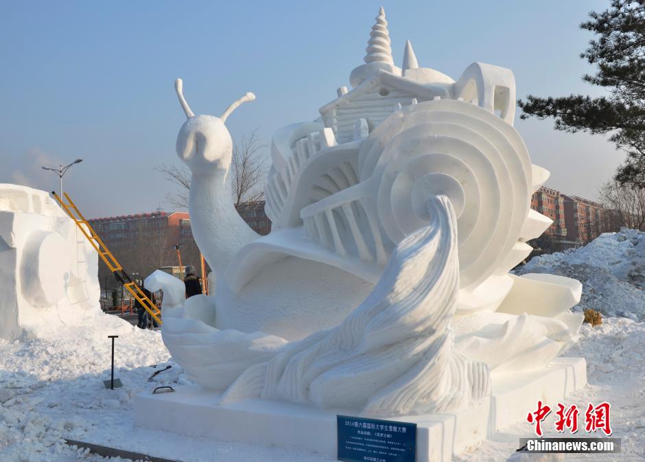 1月7日,第六屆國(guó)際大學(xué)生雪雕比賽在哈爾濱工程大學(xué)閉幕。來自中國(guó)、俄羅斯、英國(guó)、日本、韓國(guó)、朝鮮、泰國(guó)、馬來西亞、丹麥、臺(tái)灣、香港11個(gè)國(guó)家和地區(qū)的61所高校的大學(xué)生們?cè)谶@里展示了他們的作品。圖為哈爾濱理工大學(xué)《靈夢(mèng)之城》獲得本次比賽特等獎(jiǎng)。中新社發(fā)胡迪攝
