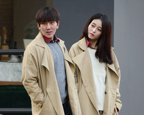 韓國首爾一購物區(qū),街頭穿著情侶裝的戀人們。(圖片拍攝于2月9日,拼圖)。在韓國,年輕的戀人或夫妻經(jīng)常通過穿著匹配的外套、襪子、襯衫、夾克,甚至是內(nèi)衣來標(biāo)榜兩人的關(guān)系。