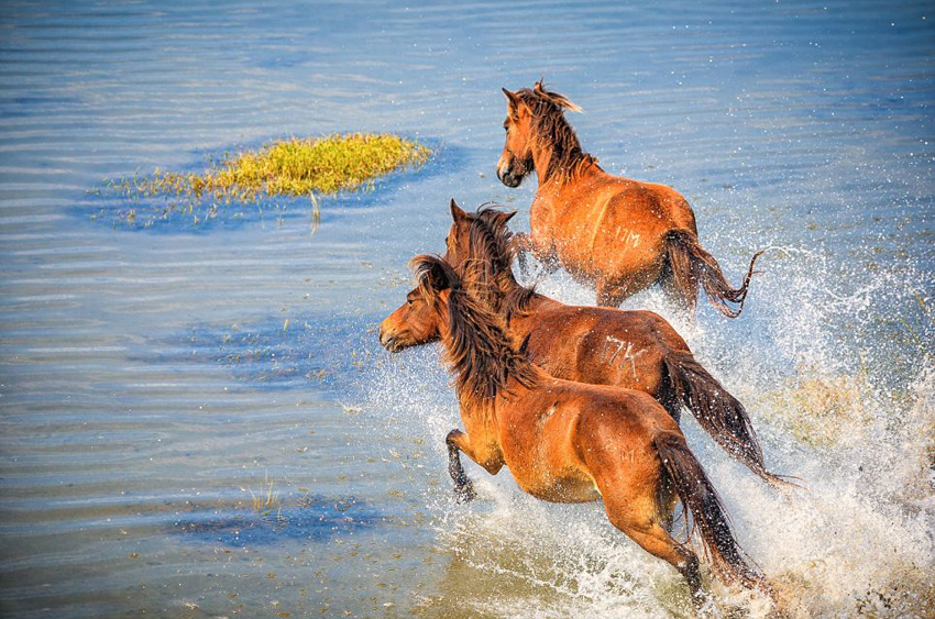 據(jù)英國(guó)《每日郵報(bào)》2月18日?qǐng)?bào)道,美國(guó)攝影師布拉德·斯蒂倫(Brad Styron)近日在北卡羅來(lái)納州水晶海岸(Crystal Coast)拍攝到了一組駿馬奔馳的照片,照片中的駿馬自由奔跑,美輪美奐。這個(gè)野馬群大概有110到130匹,是美國(guó)東部現(xiàn)存為數(shù)不多的野馬群之一,品種源于西班牙野馬,16世紀(jì)初被探險(xiǎn)家?guī)У搅四抢。這種野馬的身材比馴馬和馱馬都小,所以人們也常常把成年野馬當(dāng)成小馬駒。沙克爾福馬匹基金會(huì)與公園管理處合作,會(huì)定期利用這里的野馬來(lái)配種,雖然這群野馬群的血統(tǒng)不再那么純正,但它們?nèi)员A糁靼嘌酪榜R與生俱來(lái)的頑強(qiáng)特征,是水晶海岸的一部傳奇。