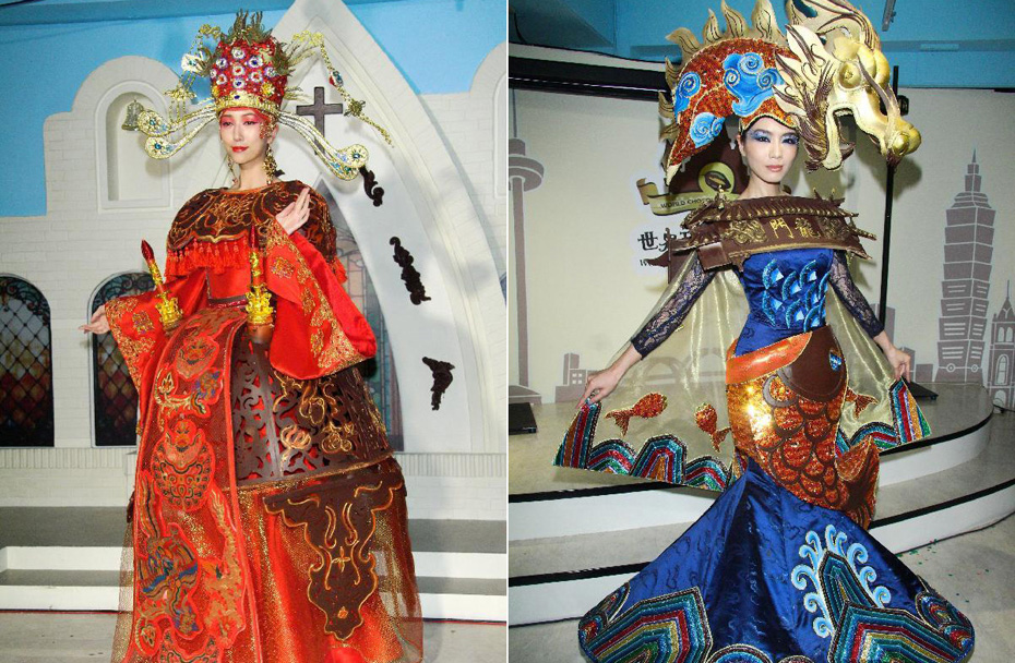 7月24日,模特在臺北“世界巧克力夢公園”主題樂園展示由巧克力裝飾而成的時裝。當日,一場以巧克力為主題的服裝秀在臺北“世界巧克力夢公園”主題樂園舉行,模特展示由巧克力裝飾而成的時裝,帶來一場“秀色可餐”的視覺盛宴。新華社發(fā)