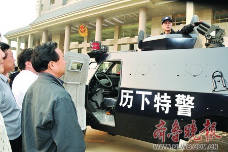 10月16日是濟(jì)南市公安局歷下區(qū)分局的開放日,30名特邀監(jiān)督員前來(lái)參觀了警營(yíng)。在這里,他們了解了警察隊(duì)伍的裝備、偵查作戰(zhàn)模式。李宏文 張慶村 攝