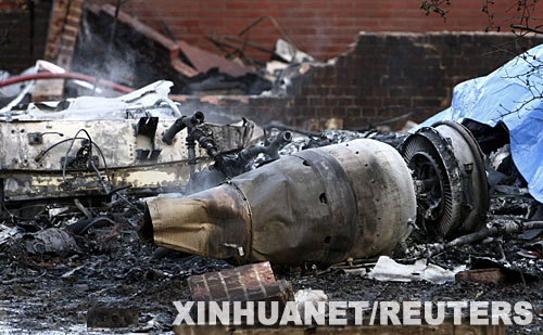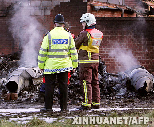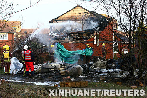 3月30日,英國一架私人飛機在英格蘭東南部肯特郡法恩巴勒鎮(zhèn)墜毀并與民宅相撞,造成5人喪生。 新華社/路透