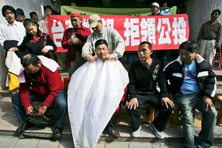 曾經(jīng)有“街頭小霸王”封號(hào),和陳水扁、謝長(zhǎng)廷并稱臺(tái)北市議會(huì)“三劍客”的公民協(xié)會(huì)理事長(zhǎng)林正杰,12日在臺(tái)灣“立法院”群賢樓大門口當(dāng)眾落發(fā),號(hào)召島內(nèi)民眾拒領(lǐng)“公投票”。