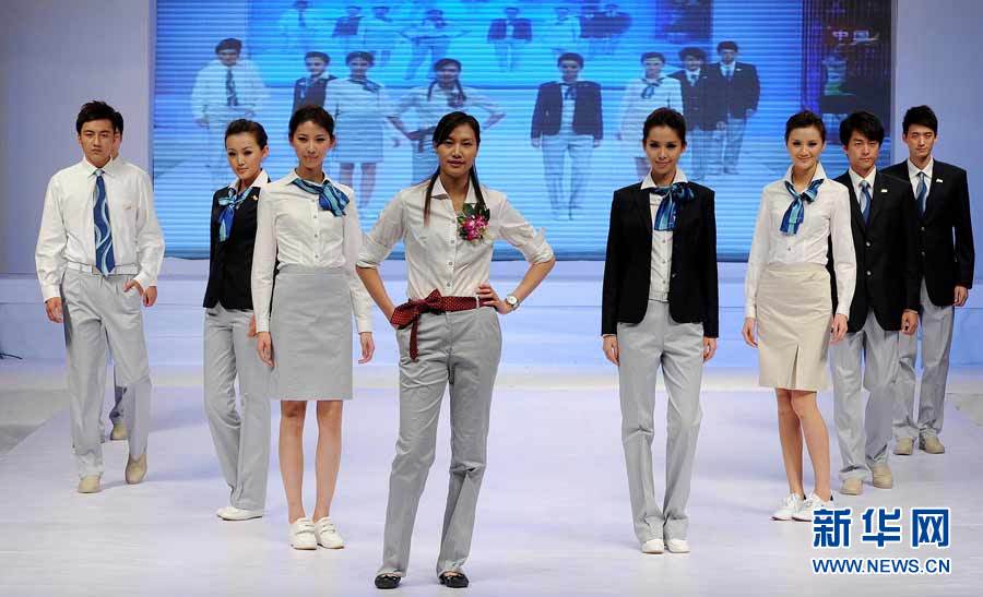 11月7日,作為一名廣州亞組委志愿者部的工作人員,羽毛球名將謝杏芳(左四)穿著亞運官員制服在T臺上進行展示。當日,廣州亞運、亞殘運會官員、工作人員、亞運技術官員(裁判)和技術代表(仲裁)總共5套亞運官方正裝制服在廣州發(fā)布。加上早前發(fā)布的亞運會頒獎禮儀服“行云流水”和白色立領升旗服,至此,7套亞運會官方服裝已經全部公開亮相!⌒氯A社記者梁志瑋攝