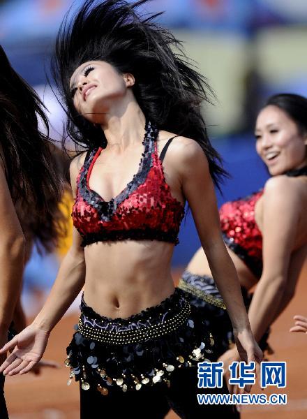 11月19日,拉拉隊員在棒球賽場上激情演出。在廣州亞運會賽場上,從全國選拔的近40支拉拉隊傾情表演,激情四射。新華社記者格桑達瓦攝
