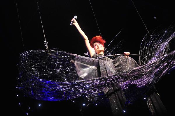 5月13日,在廣州國際體育演藝中心,王菲在演唱中。當(dāng)日晚,藝人王菲在廣州國際體育演藝中心舉行“王菲2011巡唱”廣州站演唱會。 新華社記者 吳魯 攝