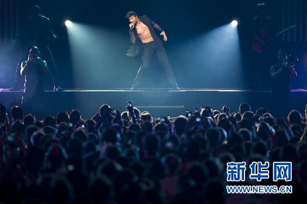 7月6日,在瑞士小城蒙特勒舉辦的第45屆蒙特勒爵士音樂(lè)節(jié)上,拉丁歌手瑞奇·馬丁在表演。在為期16天的第45屆蒙特勒爵士音樂(lè)節(jié)上,將有超過(guò)350個(gè)藝人及演藝團(tuán)體登臺(tái)獻(xiàn)藝。新華社/路透