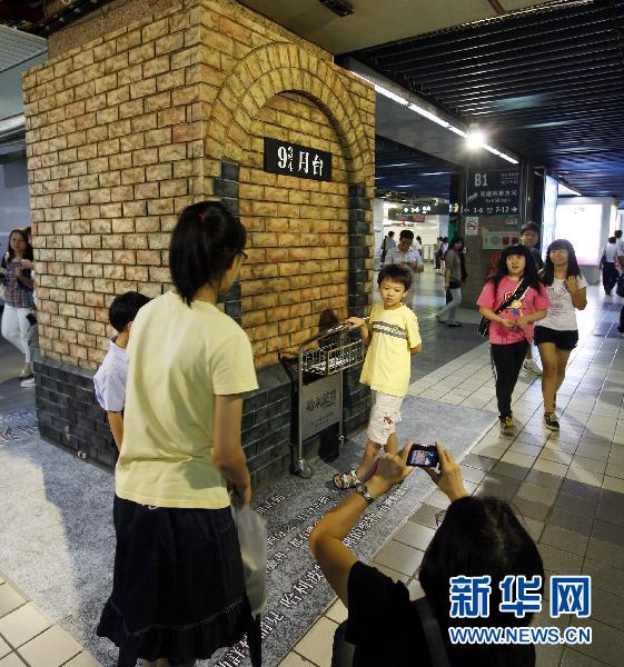 7月15日,一名小朋友在臺北火車站“九又四分之三月臺”前拍照留念。 為了給電影《哈利·波特與死亡圣器(下)》在臺灣首映造勢,臺北火車站中一處客流較多的地點(diǎn)出現(xiàn)了如同電影中“九又四分之三月臺”的場景,吸引來往乘客紛紛拍照留念! ⌒氯A社發(fā)