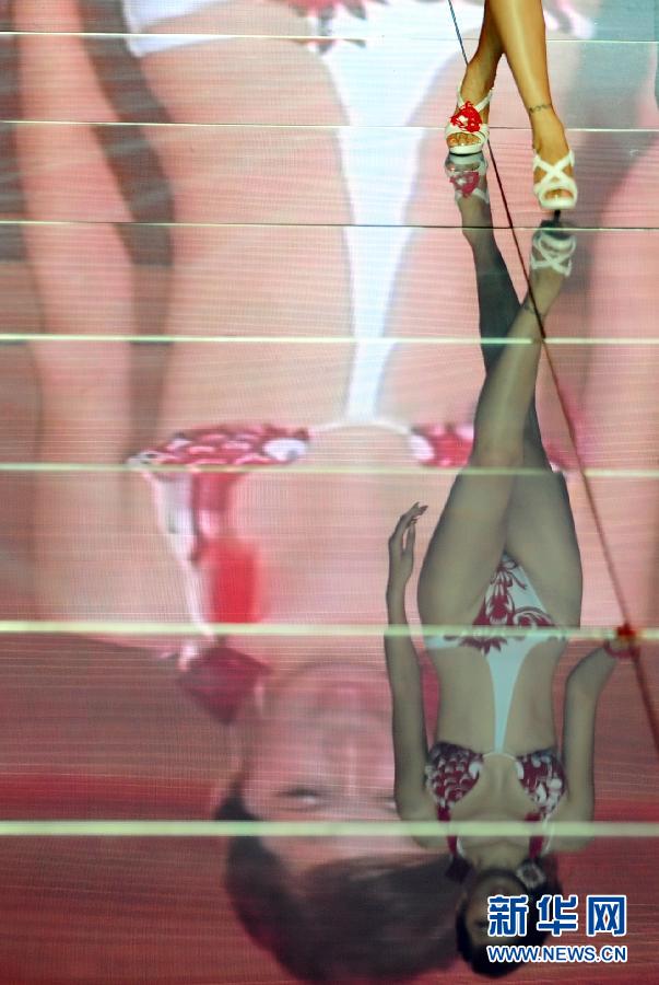 模特身著泳裝在閉幕式上表演(8月17日攝)。 8月17日晚,以“美麗引領時尚、夢想點亮生活”為主題的首屆中國(葫蘆島·興城)國際泳裝文化節(jié)在遼寧葫蘆島舉行閉幕式。新華社發(fā)(李雨澤攝)