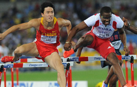 8月31日,劉翔步出上海浦東國際機場。當日,在韓國大邱參加完田徑世錦賽的劉翔回到上海。 新華社記者凡軍攝
