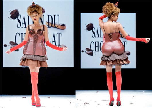中新網(wǎng)10月21日電 據(jù)外媒21日?qǐng)?bào)道,法國(guó)第17屆“巧克力沙龍”時(shí)裝秀于19日在巴黎開幕。多位法國(guó)服裝設(shè)計(jì)師和巧克力狂熱愛好者為此次時(shí)裝秀精心設(shè)計(jì)出“秀色可餐”的禮服。模特們穿著巧克力制成的精巧服裝輪番走上臺(tái)前,真不知巧克力在人體溫度的作用下會(huì)不會(huì)融化。