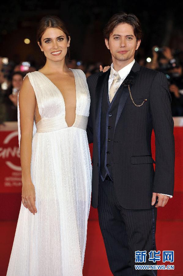 10月30日,在意大利羅馬,影片《暮光之城4:破曉(上)》演員妮基·里德(左)和杰克遜·拉思伯恩亮相羅馬電影節(jié)紅地毯!赌汗庵4:破曉(上)》當天在羅馬電影節(jié)展映。新華社發(fā)