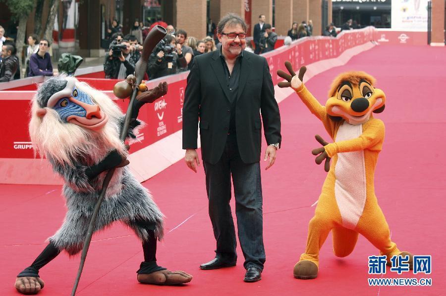11月4日,在意大利羅馬,《獅子王》制片人哈恩攜影片動畫形象亮相羅馬電影節(jié)紅地毯。當(dāng)天,《獅子王》3D重制版在第6屆羅馬電影節(jié)舉行展映。美國迪斯尼公司用3D格式對這部1994年首映的經(jīng)典動畫大片進行重新包裝,并從9月起在美國和加拿大的2300多家影院上映,取得意想不到的成功,影片連續(xù)兩周蟬聯(lián)北美票房冠軍。新華社發(fā)