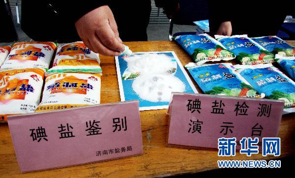 3月13日,在濟(jì)南舜耕國際會展中心,工作人員向市民介紹碘鹽的辨別方法。當(dāng)日,山東省消費(fèi)者協(xié)會、省工商局、省質(zhì)檢局聯(lián)合30個(gè)職能部門、行業(yè)組織共同舉辦“2011年山東3·15國際消費(fèi)者權(quán)益日”活動,為市民提供政策咨詢、法律維權(quán)等服務(wù)。新華社發(fā)(趙曉明 攝)