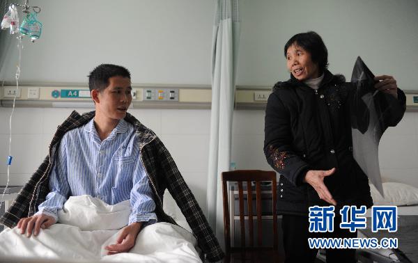 3月15日,馮德發(fā)的母親在病房內(nèi)照顧患者。 13個小時換了8個器官,全亞洲第二例成功接受全腹腔八大器官移植的38歲湖南男子馮德發(fā)獲得了新生。這位“換腹人”現(xiàn)已存活了74天。 2010年9月,馮德發(fā)因腹部劇痛住院后發(fā)現(xiàn)門靜脈系統(tǒng)廣泛血栓形成。經(jīng)過中南大學湘雅二醫(yī)院專家聯(lián)合會診,洪德龍被診斷為“抗磷脂綜合癥”,血栓堵塞了洪德龍的腹腔消化器官、脾臟和肝臟通道,進行腹腔多器官聯(lián)合移植是目前唯一根治性治療方法。2010年12月31日,馮德發(fā)在手術(shù)中成功接受了來自同一人體的肝、胰、脾、胃、十二指腸、小腸、結(jié)腸和闌尾共8個臟器的聯(lián)合移植。據(jù)介紹,馮德發(fā)是全亞洲成功接受全腹腔移植手術(shù)治療的第二人,第一例是在上海某家醫(yī)院進行的,患者在成功接受該手術(shù)80多天后不幸死亡。新華社記者李尕攝