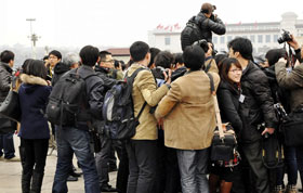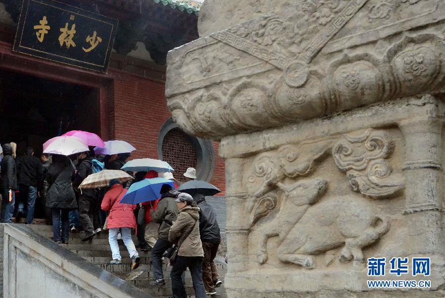 3月15日,一批游客冒雨涌入少林寺山門。