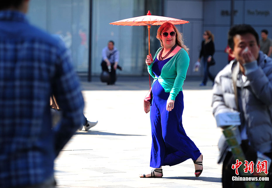 3月27日,北京最高氣溫突破20度,刷新今年最高值。圖為街頭行人薄裝出行。中新網(wǎng)記者 金碩 攝