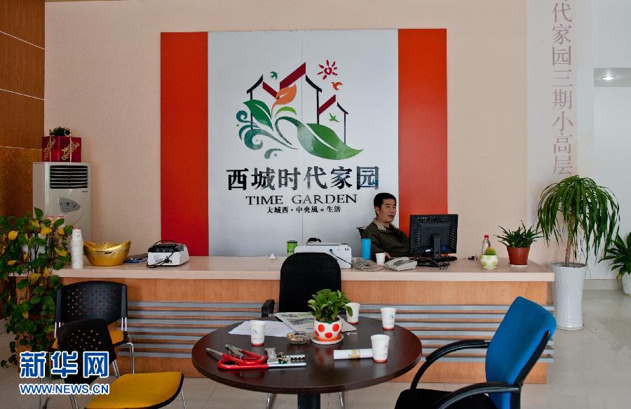 4月9日,一名工作人員仍在杭州金星房地產(chǎn)開發(fā)有限公司開發(fā)的“西城時(shí)代家園”售樓處工作。
