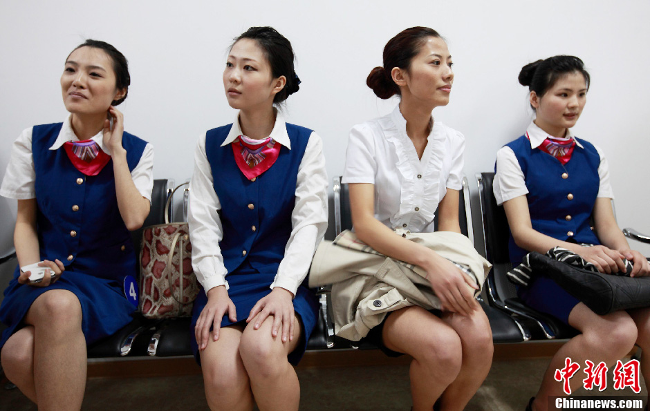 4月19日,應(yīng)聘者在等待面試結(jié)果。當(dāng)天,云南祥鵬航空在江蘇南京招聘空中乘務(wù)員,吸引了眾多懷揣藍天夢想的在校大學(xué)生前來面試。中新社發(fā) 泱波 攝