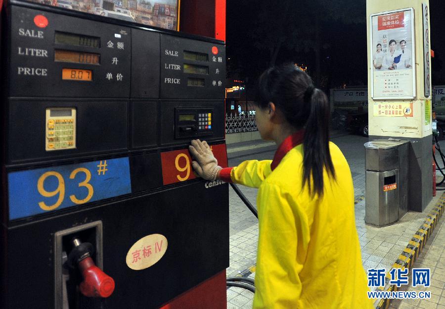 5月10日凌晨,一名工作人員在北京市宣武門一家加油站內(nèi)調(diào)整加油機價表。國家發(fā)展和改革委員會5月9日宣布,自5月10日零時起將汽、柴油價格每噸分別降低330元和310元,相當(dāng)于零售價格90號汽油和0號柴油(全國平均)每升分別降低0.24元和0.26元。這是今年來我國首次下調(diào)成品油價格。新華社發(fā)(劉長龍攝)