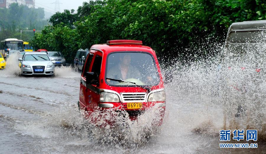 5月21日,重慶九龍坡區(qū)創(chuàng)業(yè)大道一路段積水嚴重,車輛在涉水通過。當日凌晨起,重慶市各地遭遇暴雨襲擊,降雨地區(qū)集中在西部、西南部、中部、東南及主城。降雨導致主城區(qū)多處積水嚴重,并引發(fā)交通大面積擁堵。新華社記者李健攝