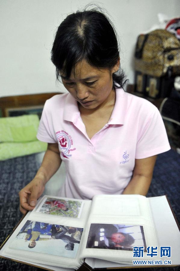 袁德珍在住所翻看兒子的相片(5月22日攝)。這幾天,在微博上熱傳著一個(gè)動(dòng)人的故事:在經(jīng)歷半年內(nèi)接連失去丈夫和兒子悲痛煎熬后,一位在深圳打工的40歲的母親做出了一個(gè)艱難的決定:將自己腦死亡的11歲兒子田干的所有器官及遺體捐獻(xiàn)出來(lái)。5月13日母親節(jié)當(dāng)天,在廣州中山大學(xué)附屬第一醫(yī)院進(jìn)行的器官捐獻(xiàn)移植手術(shù)中,小田干留下的器官和眼角膜使5人得到了及時(shí)救治。新華社記者 陳曄華 攝