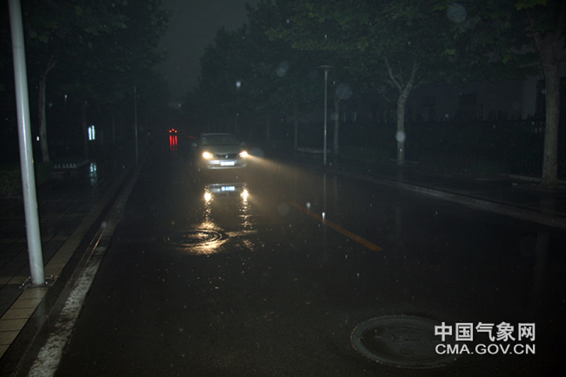 6月3日15時(shí)許,京城濃云密布,白晝?nèi)缫埂!氨锪恕痹S久的雨水瓢潑而下,路上行駛的車輛紛紛打開大燈減速慢行。圖為京城濃云密布,白晝?nèi)缫。胡亞攝 圖片來(lái)源:中國(guó)氣象網(wǎng)