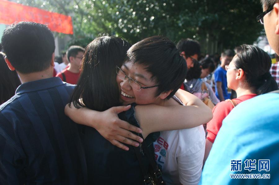 6月8日,在內(nèi)蒙古呼和浩特市第二中學(xué)考點(diǎn),一名考生在考場(chǎng)外與老師擁抱。當(dāng)日,全國(guó)部分地區(qū)2012年高考結(jié)束。2012年全國(guó)高考共有約915萬(wàn)名考生報(bào)名參加考試。 新華社記者張帆攝