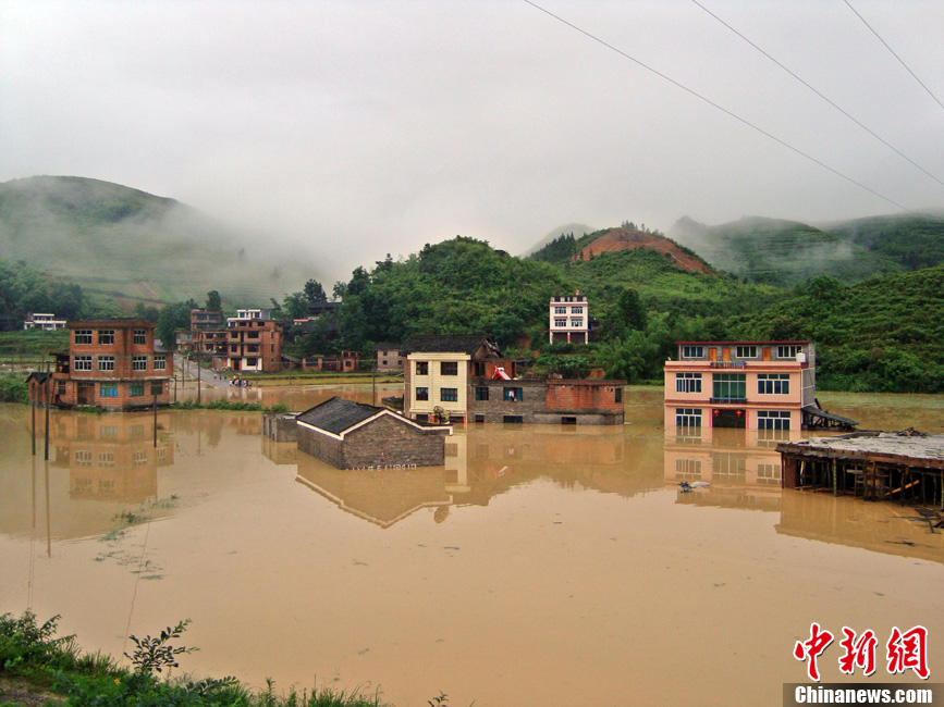 貴州省天柱縣甕洞鎮(zhèn)于日前突降特大暴雨,造成嚴(yán)重的洪澇災(zāi)害。據(jù)初步統(tǒng)計,洪災(zāi)造成近2萬人受災(zāi),270多戶房屋受損,17790畝農(nóng)作物受災(zāi),道路交通塌方、下陷220多處,電力多處損壞,全鎮(zhèn)處于停電、停水狀態(tài)。中新社發(fā) 肖振干 袁燦平 攝
